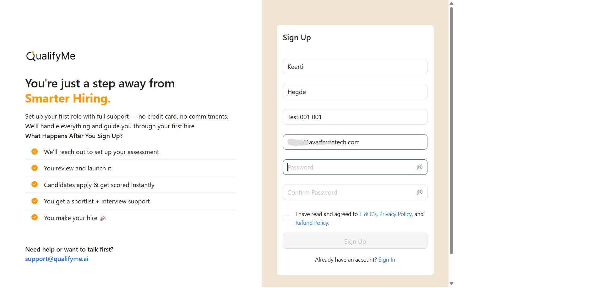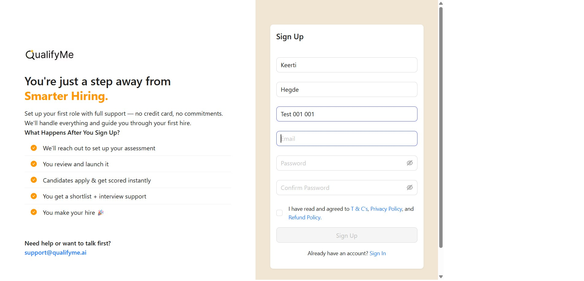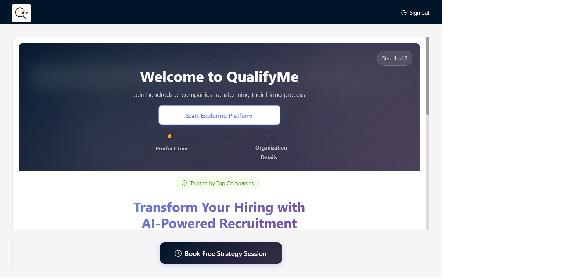 This guide details the process of creating a new user account, signing up for the platform, setting up initial organization details, and beginning the job posting creation process on QualifyMe.