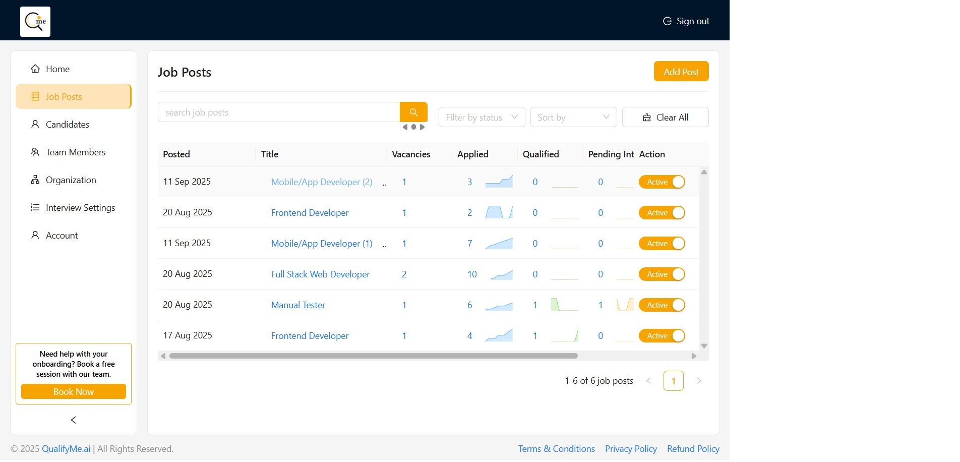 From the main dashboard, click on 'Job Posts' in the left navigation menu.