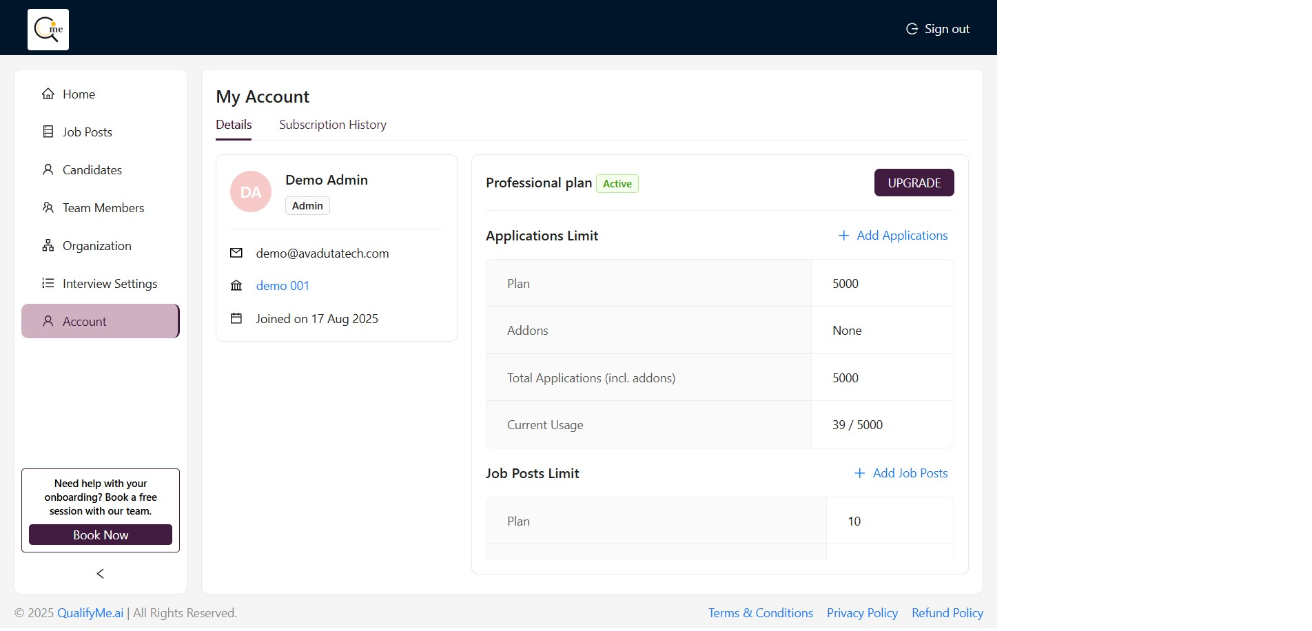 This guide demonstrates how to navigate from the main dashboard to the 'Account' section and then select 'Subscription History' to review plan details.